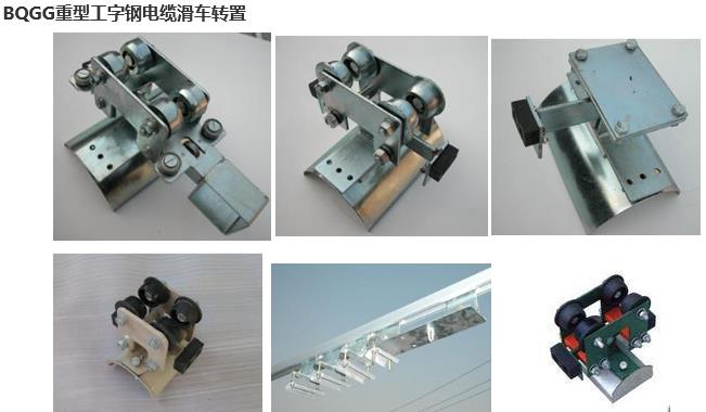 GHC型工字鋼電纜供電系列由牽收引滑車、電纜滑車、終端滑車三部分組成,牽引滑車跟隨移動機械導(dǎo)纜(牽引)裝置,每個移動機械配1個,隨移動機械往返運行。中間電纜滑車將電纜懸掛在工字鋼軌道范圍內(nèi)隨牽引滑車移動,兩端并裝有緩沖撞頭,滑車視移動長度不同而定數(shù)量。終端滑車固定在工字鋼導(dǎo)軌末端,一般每個移動機械設(shè)置1個。首端為電纜牽引車,終端為固定掛線架,中間為電纜滑車,該系列滑車分Ⅰ、Ⅱ、Ⅲ、Ⅳ、Ⅴ五種型號,如用戶采用12#、14#、16#或更大號數(shù)工字鋼,可在訂貨時注明,本公司可成套供貨。