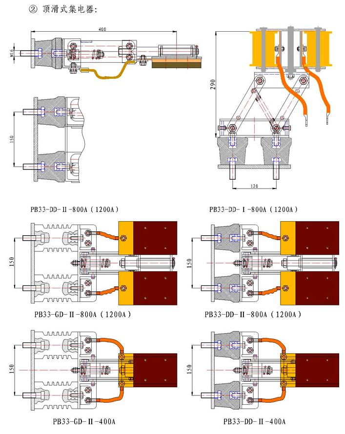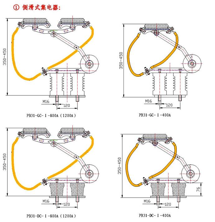 附:PB系列剛體滑觸線集電器規(guī)格尺寸圖