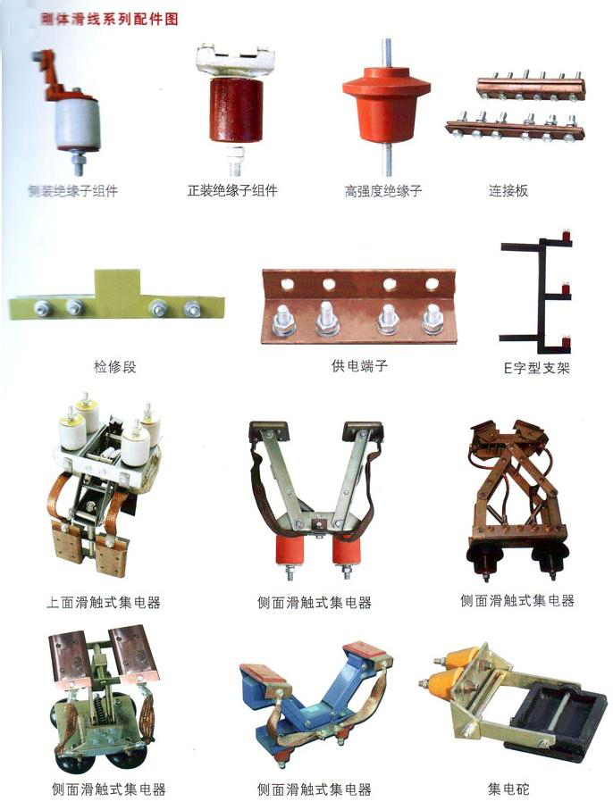 JGHX-T、JGHX-TⅡ、JGHX-TⅢ系列鋼體滑線由銅導(dǎo)軌、導(dǎo)軌支架、絕緣子組件以及外置式集電器等組件組合而成,由于該產(chǎn)品具有電流大、耐高溫、抗腐蝕等特點(diǎn),因此廣泛應(yīng)用于冶金、造船、港口等行業(yè).