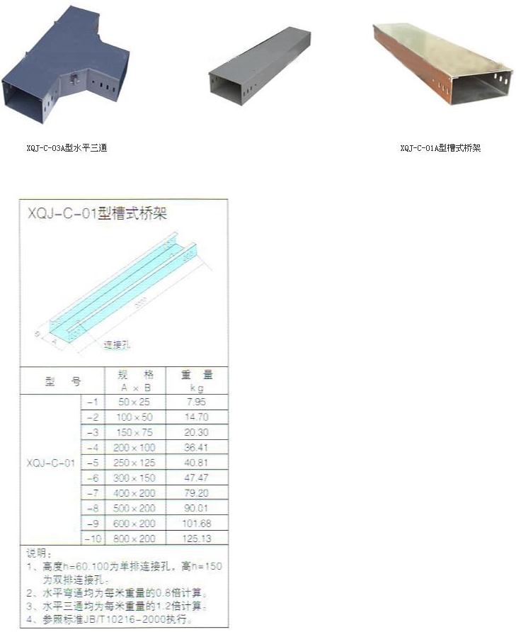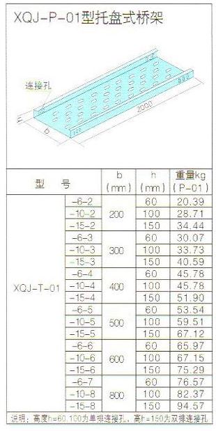 金屬電纜橋架托盤式電纜橋架具有重量輕、載荷大、造型美觀、結構簡單、安裝方便等優(yōu)點。托盤式橋架是石油、化工、電力、輕工、電視、電訊等方面應用最廣泛的一種。它既適用于動力電纜的安裝,也適用于控制電纜的敷設。托盤式橋架在不同跨距下最大允許均布載荷及變形量不同:托盤式橋架其表面處理分為靜電噴塑、鍍鋅熱鍍鋅、噴仿瓷、鍍鋅鈍化幾種,在重腐蝕環(huán)境中可特殊防腐處理。托盤式橋架血有護罩,其所有配件與梯級式、槽式橋架通用。
